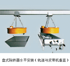 軌道方向:根據(jù)現(xiàn)場(chǎng)條件,除鐵器在大皮帶機(jī)頭上方吊掛,其軌道可與大皮帶方向垂直或同向?;虺F器在大皮帶上下山段或水平段止方吊掛,其軌道方向必須與大皮帶方向垂直。